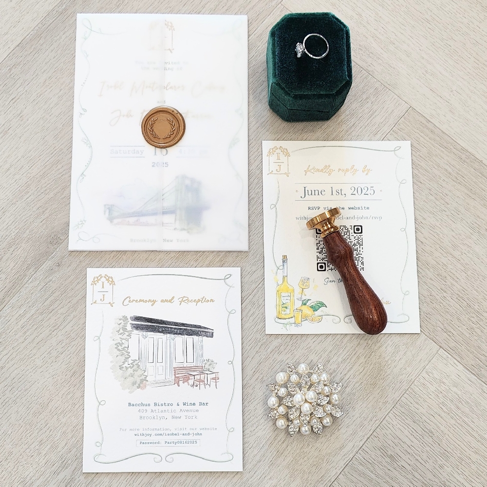 This is a gallery of recent photos of custom wedding invitation designs from our past clients. During our consultation phase, we will listen to the client to see what we can create to give them a custom invitation look. These photos have also been posted to our Instagram feed.